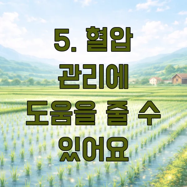 앞서 붓기 제거 효능에서 칼륨의 중요성을 살짝 언급했는데요, 이 칼륨 성분이 혈압 조절 에도 긍정적인 영향을 미칠 수 있어요. 칼륨은 체내 과도한 나트륨을 배출시켜 혈관을 이완시키고 혈압을 낮추는 데 도움을 주기 때문입니다.