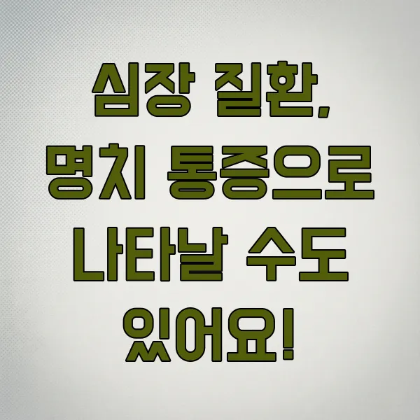 매우 드물지만, 명치 답답함이나 통증이 심장 질환 의 신호일 수도 있다는 점을 알아두시는 것이 좋아요. 특히 협심증이나 심근경색 같은 질환은 가슴 통증 외에도 소화 불량이나 명치 답답함, 메스꺼움 등 비전형적인 증상으로 나타날 수 있습니다.