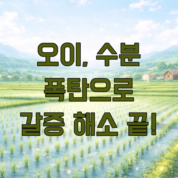 오이 하면 가장 먼저 떠오르는 게 바로 수분 이죠. 실제로 오이는 약 95% 이상이 수분으로 이루어져 있답니다. 이 때문에 더운 여름철이나 운동 후 잃어버린 수분을 보충하는 데 아주 탁월한 효과를 발휘해요.